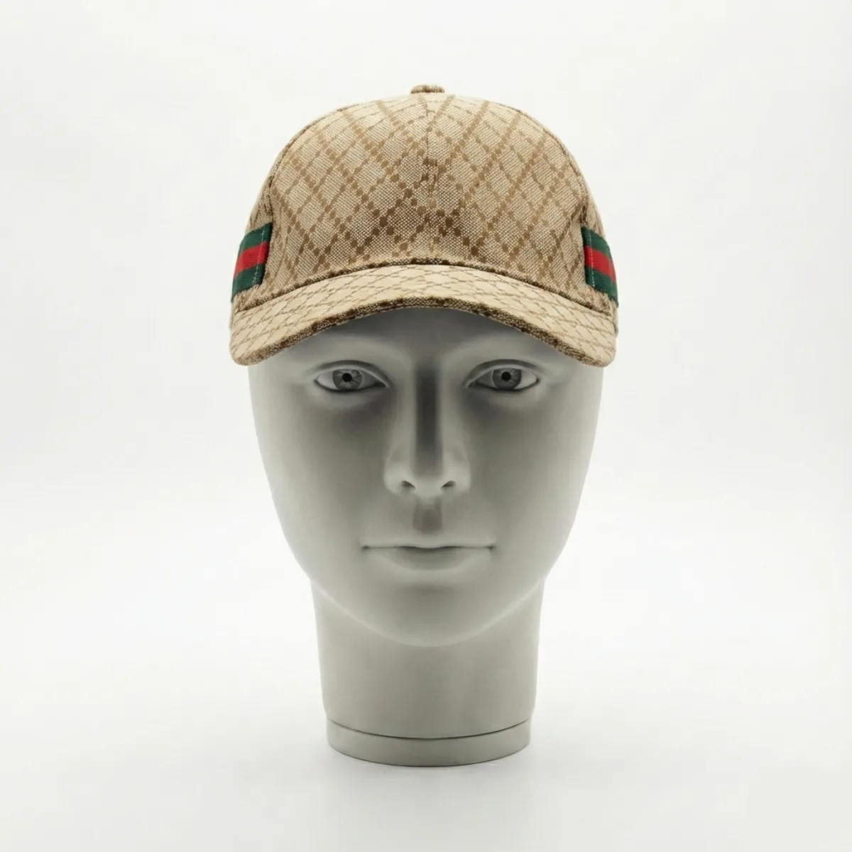 This Cap with a Classic Pattern and Logo Emblem offers a stylish design inspired by timeless fashion elements.