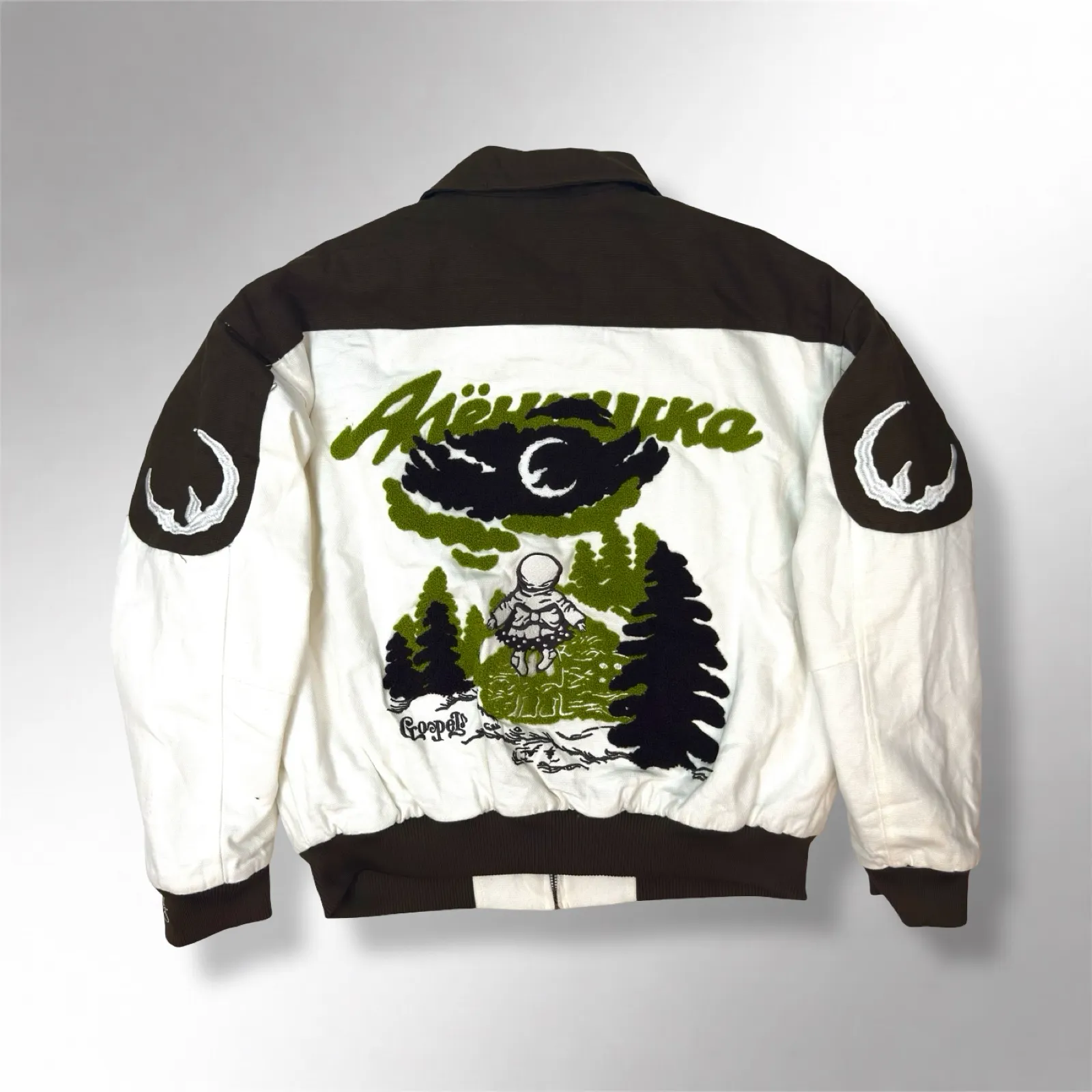 The Alyonushka Detroit Bomber Jacket is a statement piece that combines retro fashion with artistic streetwear influence. Its bold design and versatile fit make it a standout option for customers searching vintage shops Dubai, vintage store Dubai, or vintage clothing stores near me for unique outerwear.