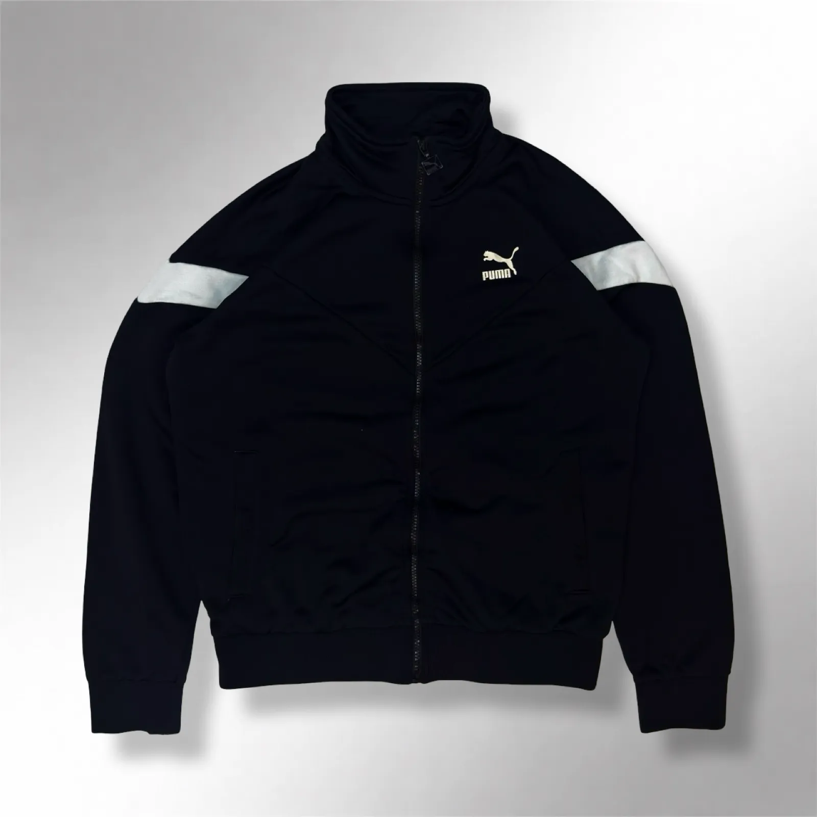 Size on tag: S ? Actual Size: S to M ? Dimension: 22×25 ? Description: Puma Iconic Black Track Jacket ? Condition: Good