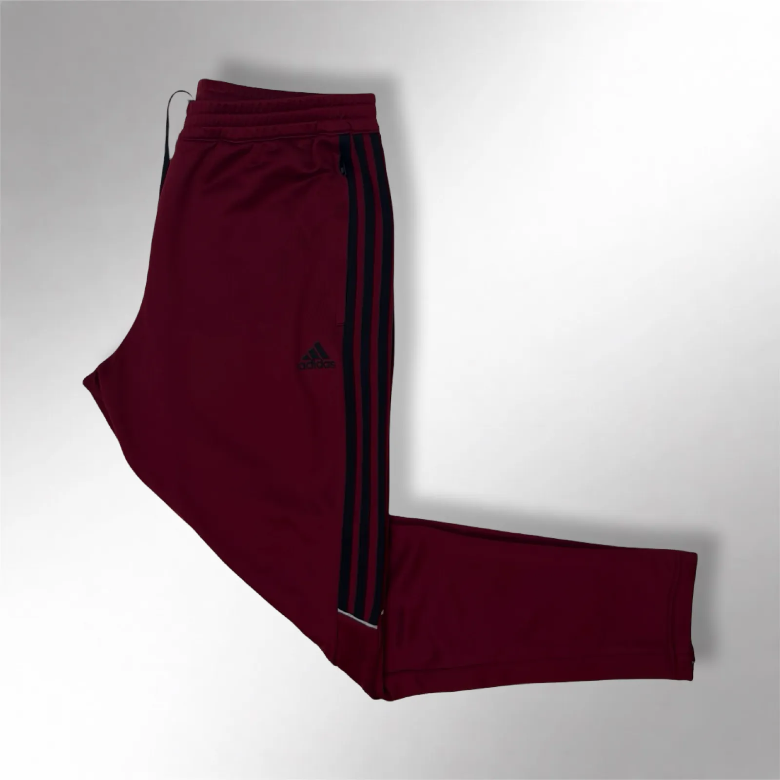 Adidas Tiro 23 League Pants are inspired by professional football training wear. Designed in a rich burgundy colorway with reflective horizontal detailing, these pants offer a modern athletic look. Lightweight and breathable fabric ensures comfort during movement. Suitable for sports, training, or casual streetwear. Actual fit ranges from L to XL, providing relaxed comfort. A performance-driven yet stylish Adidas piece.