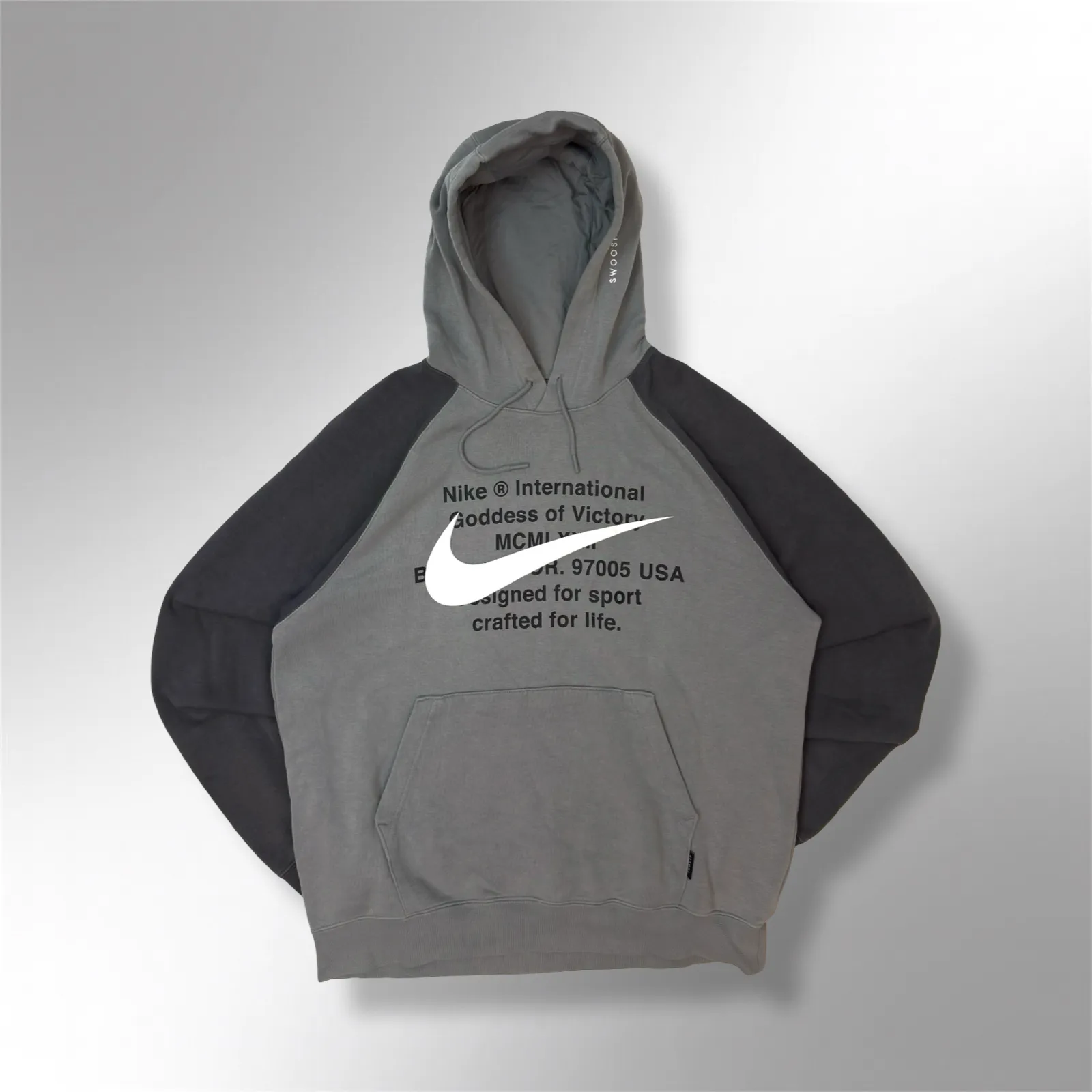 The Nike Herren NSW Swoosh Hoodie is a classic sportswear staple that blends comfort with iconic branding. Designed with a relaxed fit, this hoodie offers everyday versatility for casual wear or street-style outfits. The bold Swoosh logo adds a signature Nike touch, while the soft interior fabric ensures warmth and comfort throughout the day. Built for durability, the hoodie maintains its shape even after regular wear. Ideal for layering or standalone use, it pairs effortlessly with jeans, joggers, or athletic wear. Despite a minor washable arm stain, the overall condition remains solid. A great choice for those seeking authentic Nike style with everyday practicality.