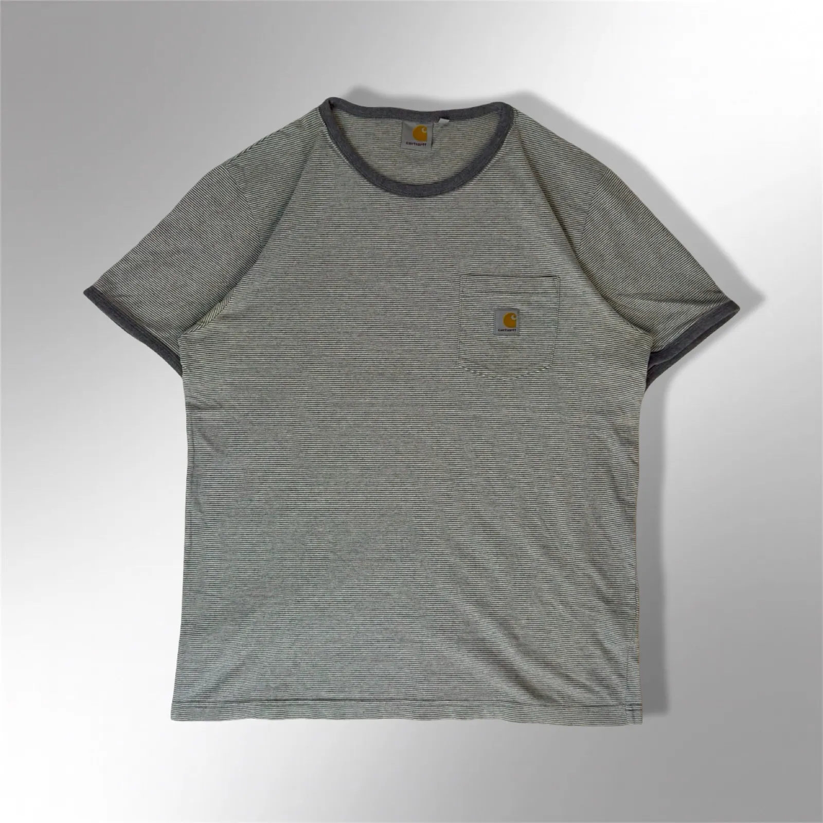 The t-shirt is in good condition, with fabric structure and striping well preserved. Ideal for Carhartt enthusiasts, minimal streetwear lovers, or anyone seeking a reliable everyday essential, the Verner Pocket Stripe T-Shirt delivers durability, comfort, and understated style in one versatile wardrobe staple.