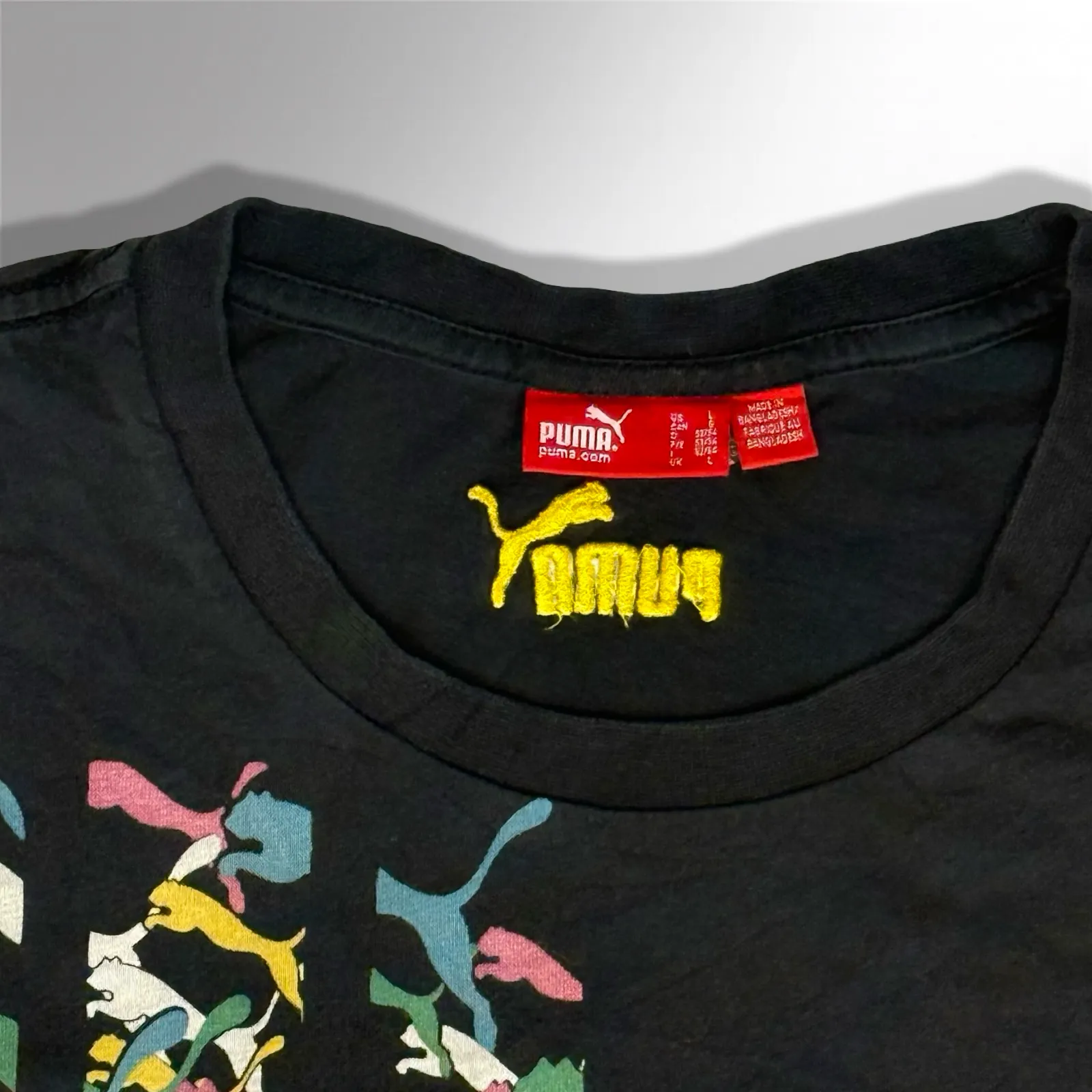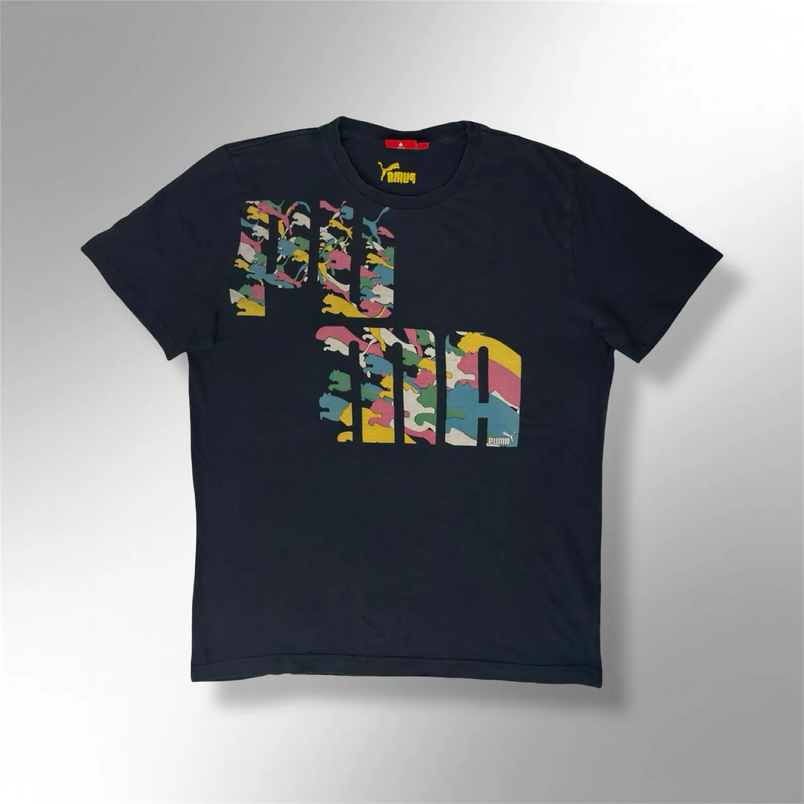 This authentic Puma Heat Wave T-Shirt is a bold and stylish piece of streetwear, perfect for fans of athletic apparel, vintage fashion collectors, and casual lifestyle enthusiasts. Featuring a vibrant multicolor camo chest logo, this t-shirt embodies Puma’s commitment to dynamic design, comfort, and modern athletic aesthetics. Crafted from high-quality cotton fabric, it offers breathability, softness, and durability, making it ideal for everyday wear, casual outings, or layering with streetwear ensembles.