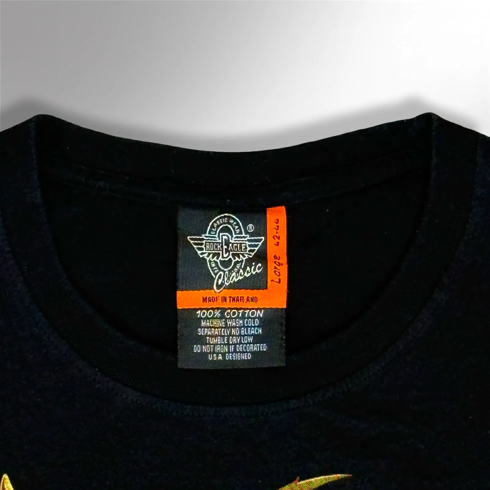 Maintained in excellent condition, the t-shirt preserves both its graphic integrity and fabric quality, emphasizing its premium nature. Perfect for collectors, bikers, and anyone seeking a unique statement piece, this Rock Eagle t-shirt combines bold design, comfort, and lasting style in one iconic garment.